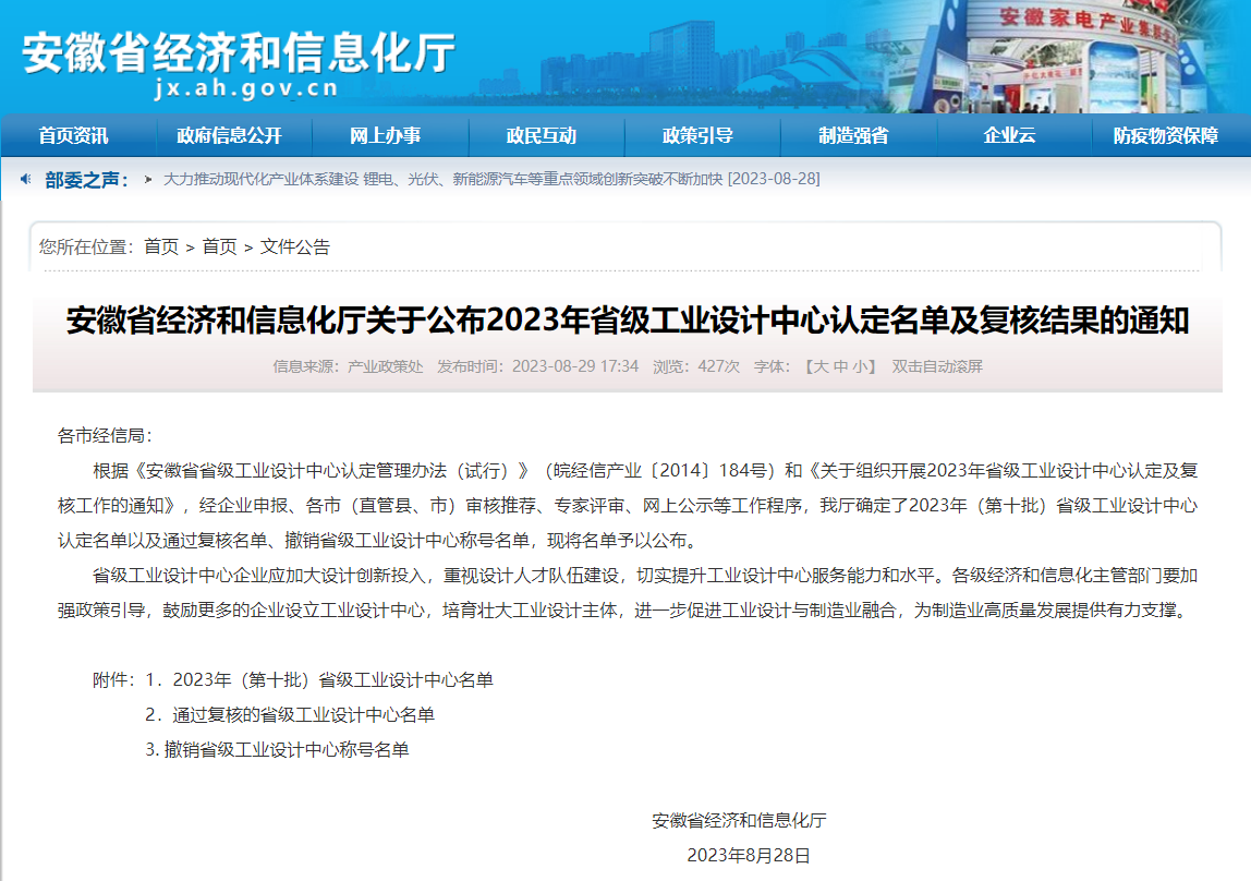 中鋼天源安徽智能裝備股份有限公司被認定為省級工業設計中心