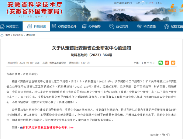 中鋼天源安徽智能裝備股份有限公司通過安徽省企業研發中心認定