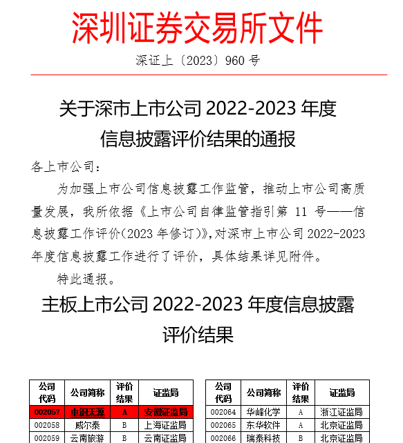中鋼天源信息披露考核獲得深交所A級評價