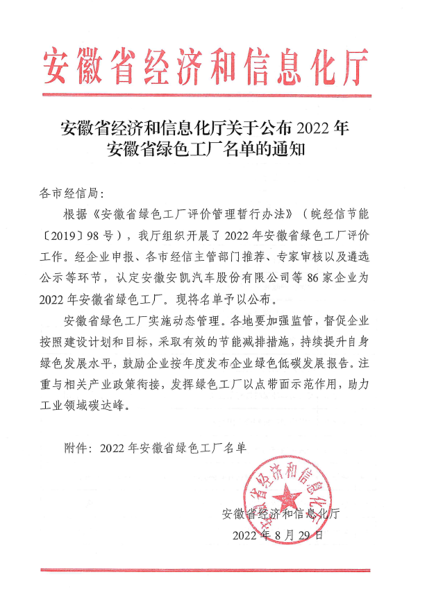 中鋼天源喜獲“2022年安徽省綠色工廠”