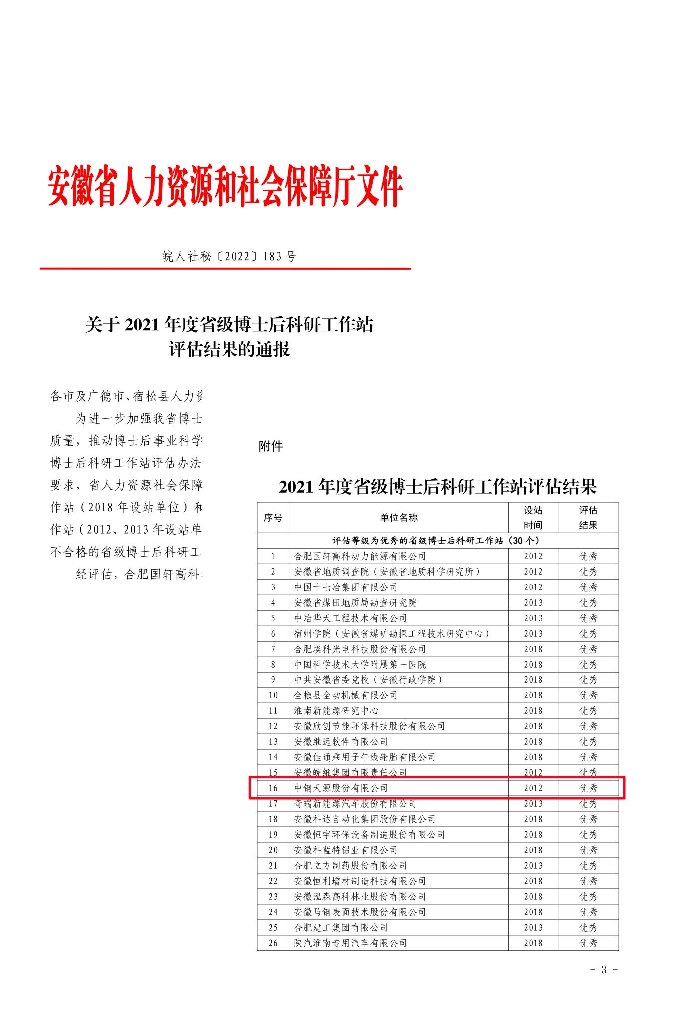 中鋼天源博士后科研工作站獲安徽省綜合評估 “優-秀”評級