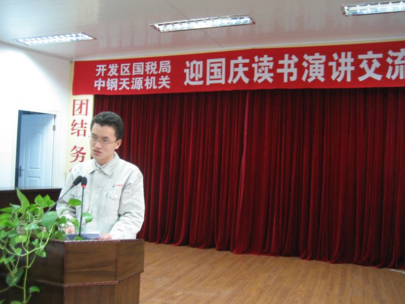 演講交流會(huì)結(jié)束時(shí),中鋼天源黨委書記、董事長洪石笙和開發(fā)區(qū)國稅局局長劉二八高度贊揚(yáng)了演講者的精彩表現(xiàn),雙方領(lǐng)導(dǎo)都表示,此次活動(dòng)增強(qiáng)了雙方的溝通,加強(qiáng)了雙方的了解,提高了員工的素養(yǎng),要將雙方活動(dòng)繼續(xù)下去,以此次活動(dòng)為新起點(diǎn),并創(chuàng)新活動(dòng)形式,以更加豐富多彩的活動(dòng)形式開展“創(chuàng)先爭優(yōu)”的共建活動(dòng),為雙方共創(chuàng)文明、和諧、發(fā)展搭建一個(gè)平臺(tái),通過雙方共建活動(dòng),達(dá)到“稅企共建,同創(chuàng)文明,永葆先進(jìn),和諧發(fā)展”的總體目標(biāo)。