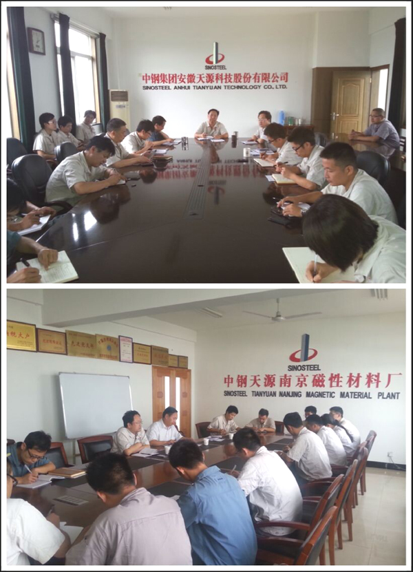 8月12日—18日,中鋼天源分別在南磁廠、通力公司、機關本部召開了四場黨的群眾路線教育實踐活動“邊整邊改”座談會,對公司黨的群眾路線教育實踐活動第一、第二環節工作進行檢查和座談討論。公司董事長、黨委書記洪石笙出席會議并對反映的相關問題和工作建議,進行了認真記錄。黨委副書記、紀委書記亞海斌及公司活動辦公室相關人員參加了調研。