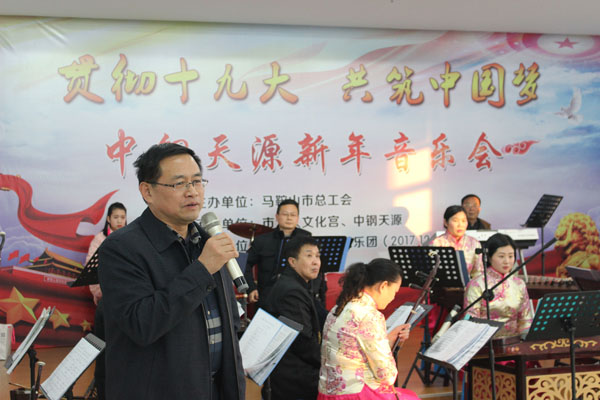 公司黨委副書記、紀委書記、工會主席亞海斌在活動中致辭,他對市總工會送文化到企業表示感謝,并表示,公司將以習近平新時代中國特色社會主義為指引,在上級黨委的堅強領導下,以更加頑強的工作作風,更加積極的精神面貌,攻堅克難,扎實工作,奮力開創中鋼天源發展的新局面,為建設現代化“五大發展”馬鞍山,為實現“兩個一百年”奮斗目標和中華民族偉大復興中國夢貢獻力量。